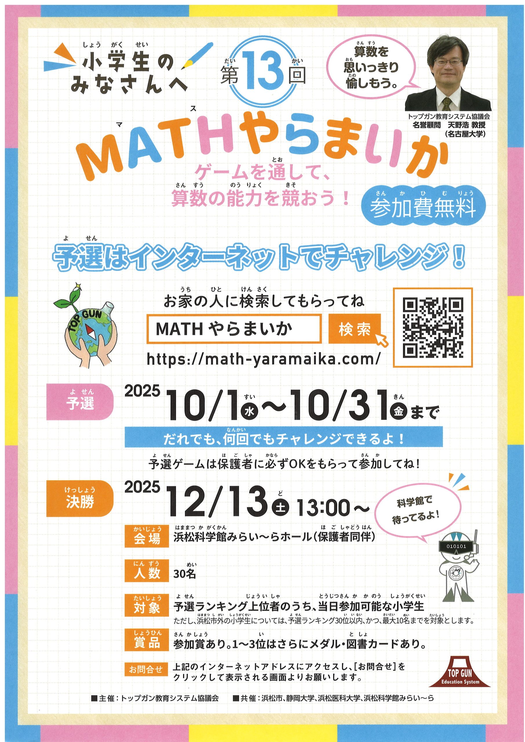 第10回大会を記念した「MATHやらまいか第10回大会記念リーフレット」を公開しています! こちらからぜひご覧ください!